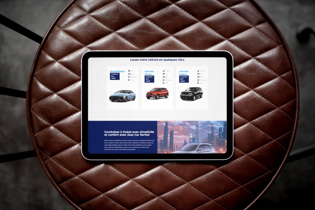 Que ce soit pour un court séjour, un déplacement professionnel ou une location longue durée, l’agence offre un service fluide, fiable et centré sur la satisfaction du client. Afin de renforcer sa présence en ligne et d’optimiser la gestion des réservations, Jaaz Rental Car avait besoin de créer un site web intuitif, moderne et rassurant, capable de convertir efficacement les visiteurs en clients.
